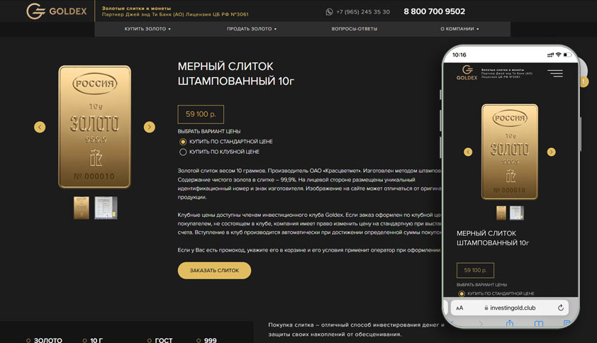 Заработайте вместе с уникальным высокотехнологичным проектом на рынке физического золота с большим потенциалом развития. Выбирайте удобные инструменты инвестирования: